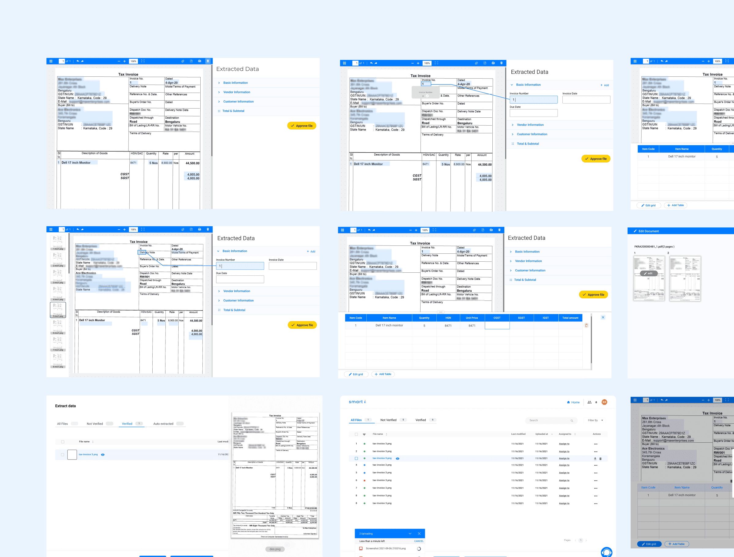 Smarti should provide a seamless interface for processing invoices, purchase orders, and business documents with minimal manual effort. The focus should be on usability, information architecture, visual hierarchy, and accessibility, ensuring users can easily navigate, extract insights, and automate tasks without friction.